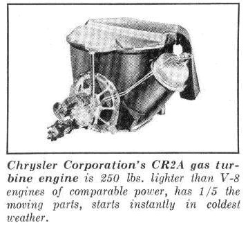 2. Has an engine that weighs only about half as much as a conventional V-8 yet the 140 horsepower it delivers to the driveshaft is equal in performance to a 200-hp piston engine.