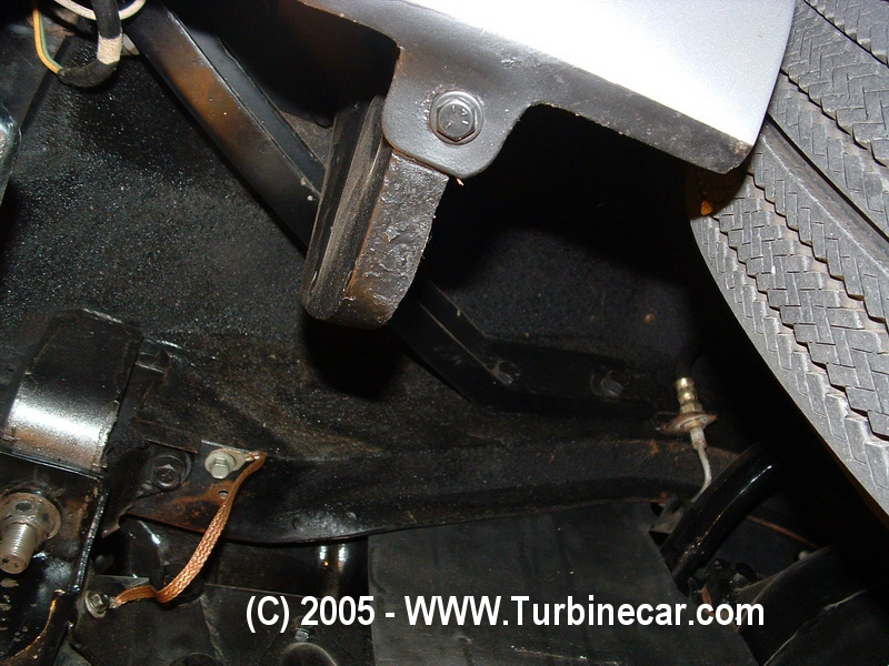 Notice the ground strap between the frame and the sub-frame - the bracket at a 45 degree angle is the brace for the front headlight ring which is the bumper.