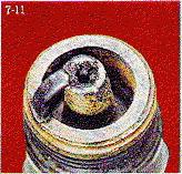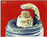 An example of overheating is shown below. Note the dead white or gray insulator nose which appears