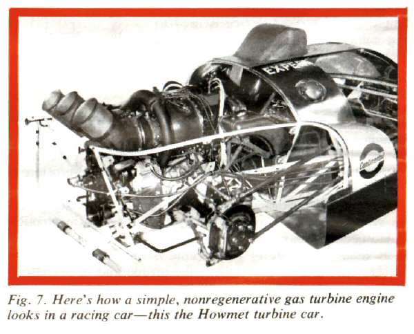One solution to this response problem, by the way, is simply to keep the compressor turbine going full bore when the "throttle" is closed and dump the excess gas out the hack door. The Howmet racing car, whose engine is shown in Fig. 7, had this provision, called a "waste gate." Not exactly a practical proposition for a road car, however.