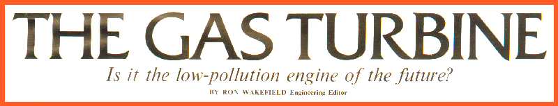 Things have changed since 1964. The factors that justified putting the turbine to pasture then (high cost of materials. the need for development work to correct its inherent deficiencies for use in cars) have become less significant in comparison to the turbine's potential for reducing air pollution. That potential is great, as we shall see: and the most compelling attraction of it (in contrast to a "controlled" piston or Wankel Internal- combustion engine) is that it is fundamentally a low-emission power source, not a high emission one that must he loaded and strangled with 'crutches."