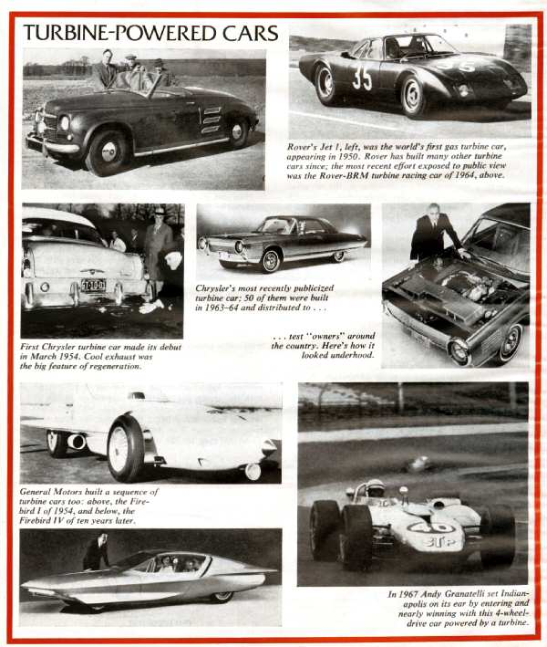 It's not, however, as if nothing had been done toward making the turbine an automotive engine, and the pioneering work of Rover and Chrysler, plus the less well known work of Ford, General Motors. Volvo and British Leyland, have produced some very significant progress toward that end.