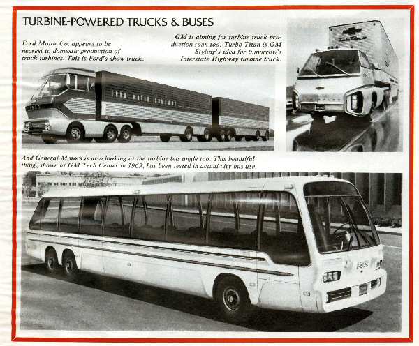 THE WINTER meeting of the American Society of Mechanical Engineers got together the heads of America's top gas turbine specialists to explore its future as an automotive engine: from Ford. GM, the University of California, the U.S. Air Pollution Control Administration, United Aircraft, John Deere and Lear (Bill himself). The man from United Aircraft (that's Pratt & Whitney) was understandably optimistic, declaring that a turbine without regeneration could be engineered to give 11 miles per gallon; the GM representative disagreed, saying 3-4 mpg was more like it for the sort of non-regenerative turbine the UA man was discussing. Ford's man indicated that the main activity at Ford just now is getting the truck turbines into production at their new plant in Toledo, Ohio, but development of car turbines continues. Lear's current activities are concentrating on a steam, not gas, turbine; but Lear suggested that he has come up with a fuel vaporizing device to replace the conventional atomizing fuel nozzles at the combustion chamber, which could do somewhat the same thing the Turbotron people are talking about.